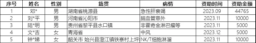 2023年大病救助项目资助名单