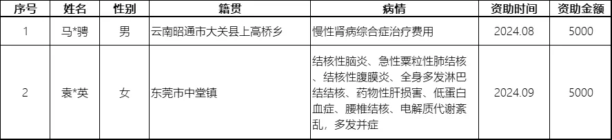 2024年大病救助项目资助名单